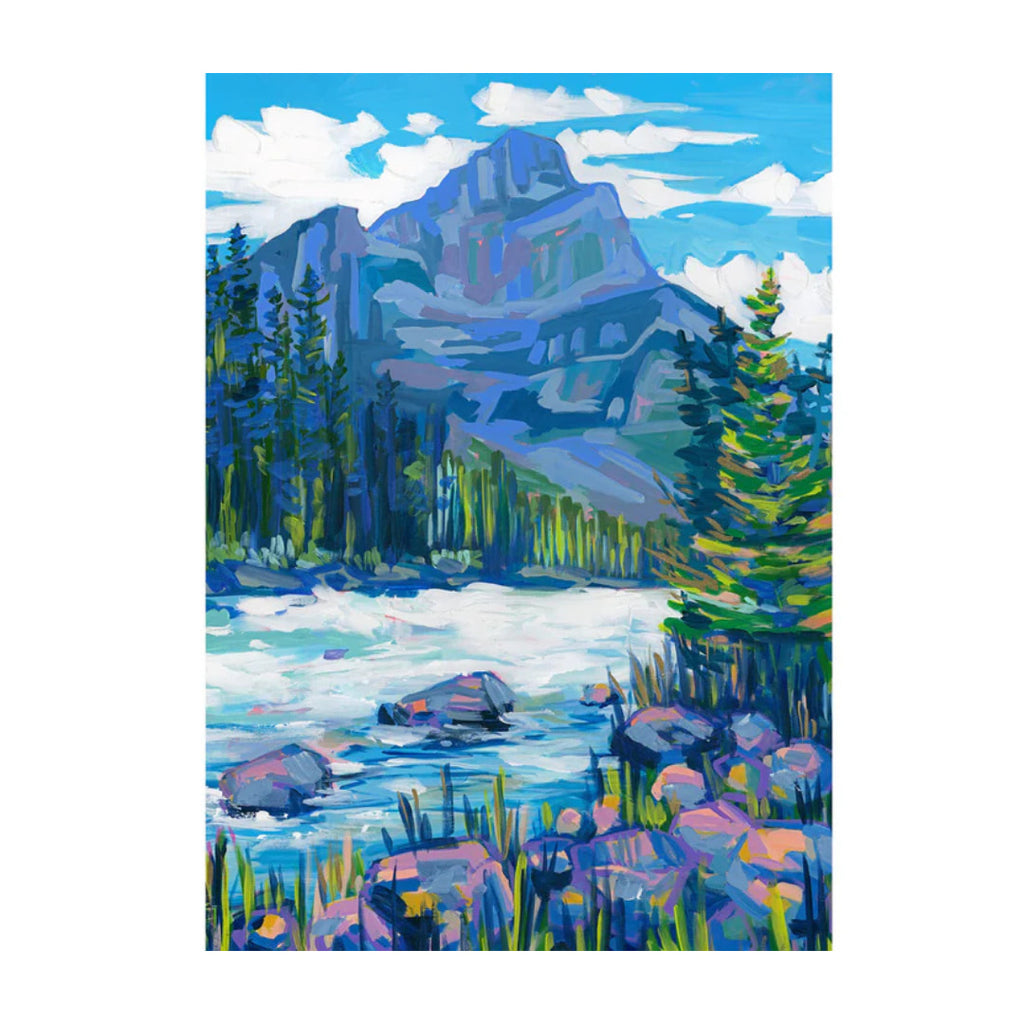 Get swept away by the wild beauty of the mountains with this breathtaking puzzle featuring Kicking Horse Pass near Golden, BC. Painted by Edmonton artist Amy Dixon, this stunning scene captures the rush of river water winding through rocky terrain, framed by forest and soaring peaks. With bold brushstrokes and vivid colour, this puzzle is a perfect escape for art lovers and mountain seekers alike—bringing the raw beauty of the Rockies to your table, piece by piece.
