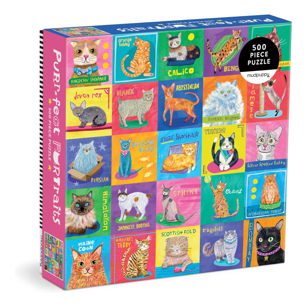The Purr-fect Portraits 500 piece jigsaw puzzle from Mudpuppy features a delightful collage of charming cat illustrations, each feline posing in their own unique portrait frame. From regal tabbies to playful calicos, this beautifully detailed puzzle celebrates cats of all kinds.