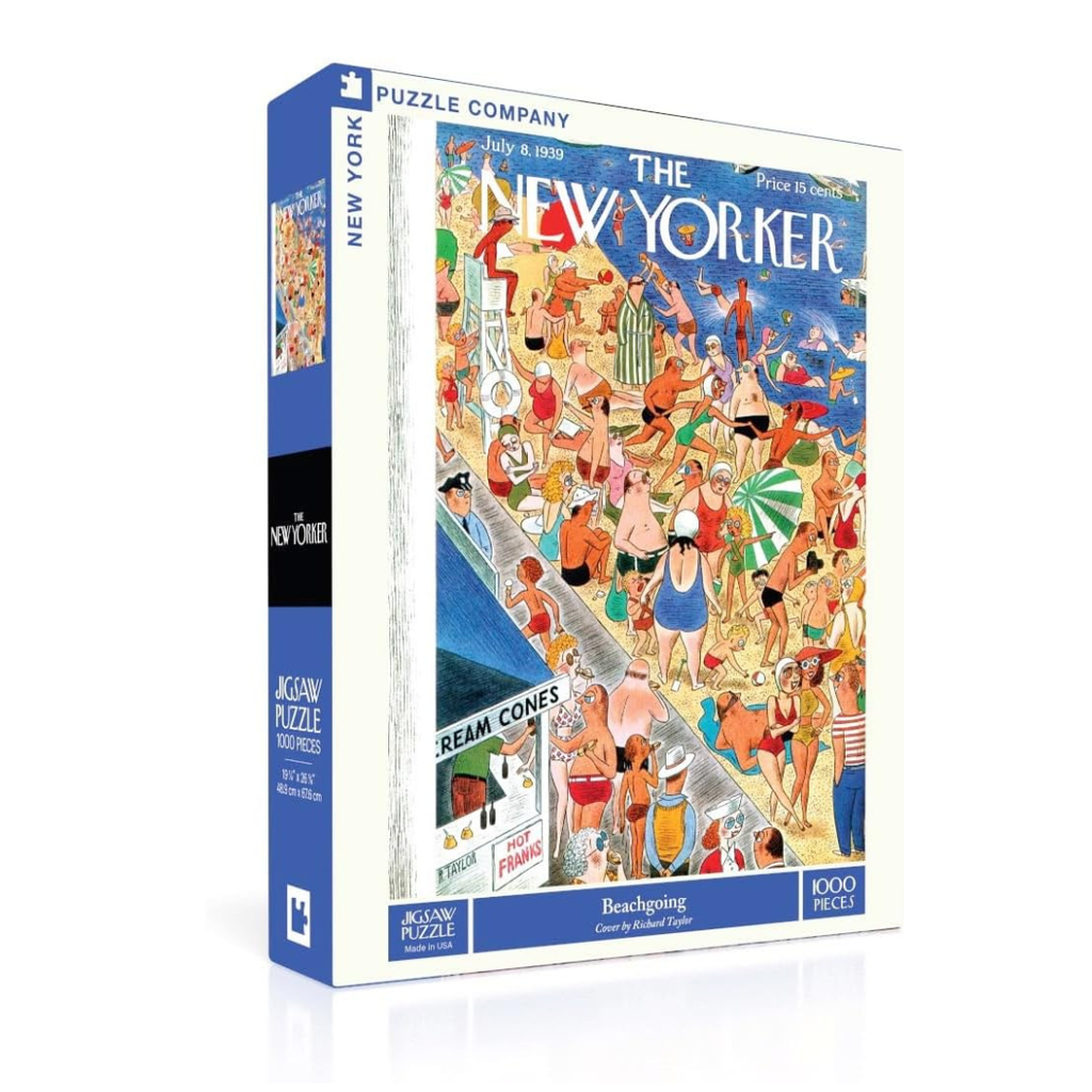 Enjoy a busy day at the beach with New York Puzzle Company’s challenging 1000 piece jigsaw puzzle with exclusive art from The New Yorker Magazine. An exuberant crowd is doing everything under the sun; tanning, chatting, eating, splashing, swimming and having a general good ol' time.