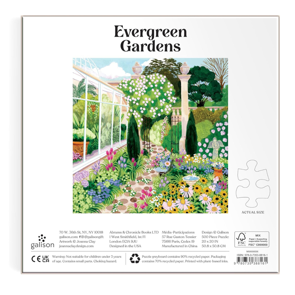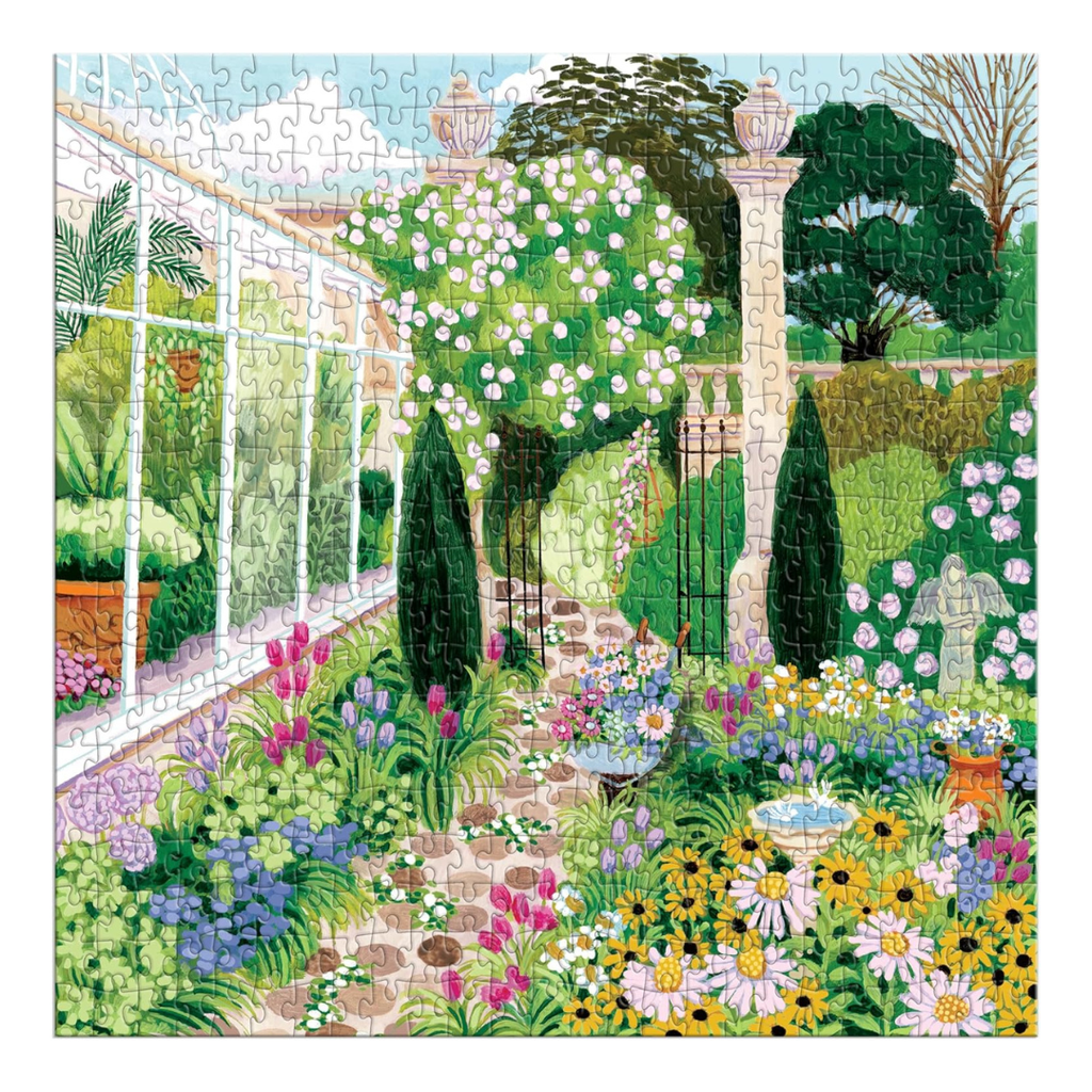 Step into a tranquil springtime escape with the Evergreen Gardens 500 piece jigsaw puzzle from Galison. This beautiful puzzle captures a dreamy cobblestone path winding alongside a glass conservatory, overflowing with colourful blooms. With every piece placed, you'll uncover a world of lush greenery, delicate flowers and sunlit glass panels that reflect the peaceful charm of a garden in full bloom. This puzzle provides a relaxing, artful activity for nature lovers and puzzle fans alike.