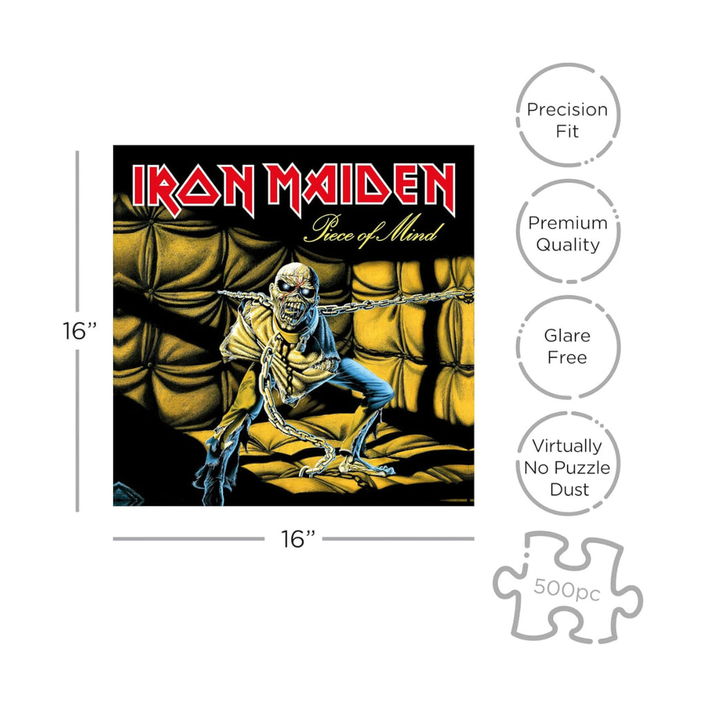 Piece Of Mind was released in 1983 and is the 4th studio album by English heavy metal band Iron Maiden. Piece together the cover artwork created by Derek Riggs with this 500 piece jigsaw puzzle.