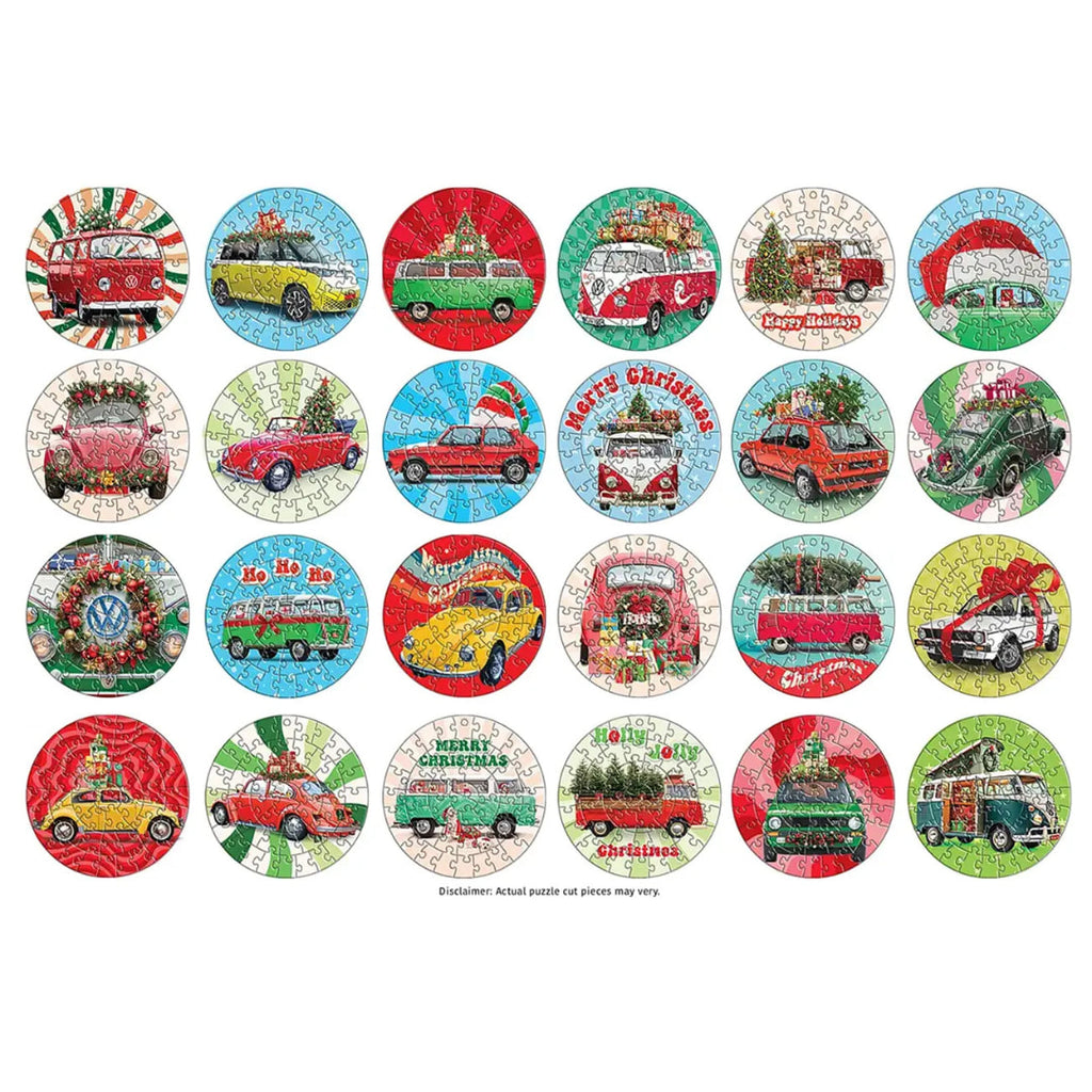 Rev up the holiday spirit with the VW Christmas Advent Calendar from Eurographics, a unique and nostalgic countdown experience! Behind each of the 24 festive drawers, you’ll discover a charming 50 piece circular jigsaw puzzle featuring classic Volkswagen vehicles decked out in holiday cheer. From vintage Beetles to retro buses, each puzzle is a joyful tribute to the golden age of VW, captured in delightful Christmas scenes. Perfect for car lovers, puzzle fans and holiday enthusiasts alike, this calendar adds a touch of retro magic to every December morning. Once completed, each mini puzzle transforms into a hanging ornament - thanks to included adhesive sheets and ribbons - making it the perfect addition to your tree or holiday display.