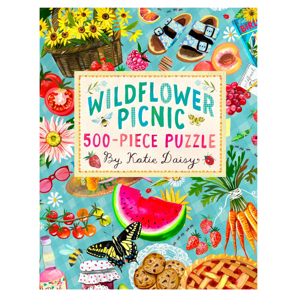 Fresh fruits, flowers and gingham galore! Step into the whimsical world of Katie Daisy and assemble the perfect wildflower picnic puzzle. This artfully designed 500 piece jigsaw puzzle will provide hours of joy and entertainment for all! Housed in an adorable picnic-basket-inspired box, it makes a sweet gift for you or for that special person in your life.