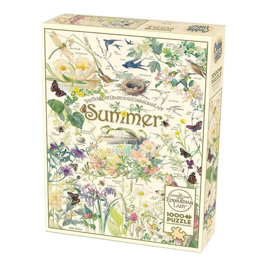 Buzzing bees, beautiful birds and summer flowers show off their vibrant palette in this lively 1000 piece jigsaw puzzle from Cobble Hill. Country Diary: Summer is taken from the collection of Edith Holden's 'The Country Diary of an Edwardian Lady'. Enjoy discovering nature's best in this delightful puzzle.