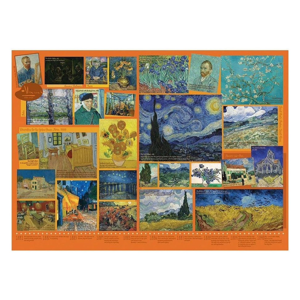 Learn about the life of van Gogh in this 1000 piece collage celebrating his works. Informational quotes give a brief explanation of the painting giving one a deeper look into this artist's world.