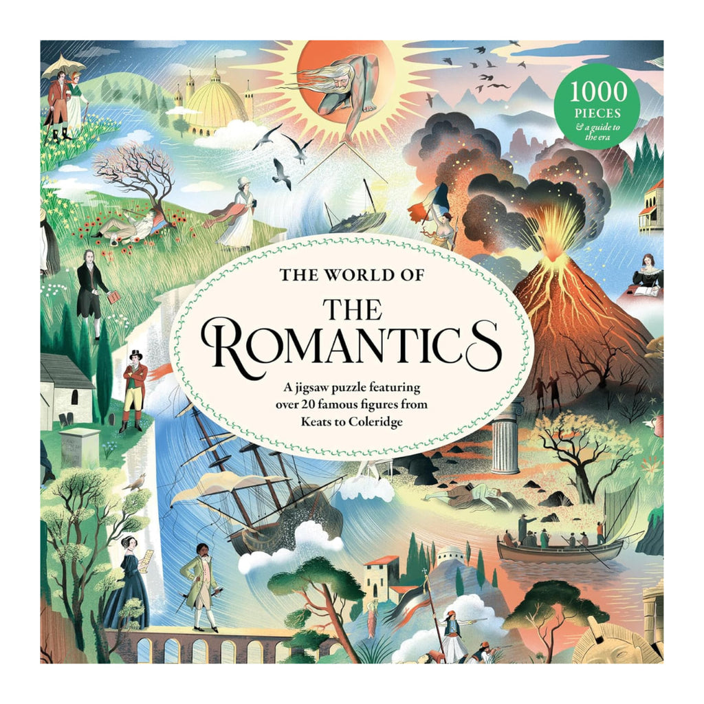 Piece together stunning moments of beauty and tragedy from the Romantic era! This detailed illustration of scenes from Romantic literature and lore is packed with real people and fictional characters to seek and find. It features famous poets, writers, artists, activists, musicians and scientists from the Romantic movement, including the Shelleys, Lord Byron, Keats, Coleridge, Wordsworth, Blake, Beethoven, Turner and more. Travel from the Lake District to the Mediterranean as you immerse yourself in the awesome power of nature and art inspired by the sublime.
