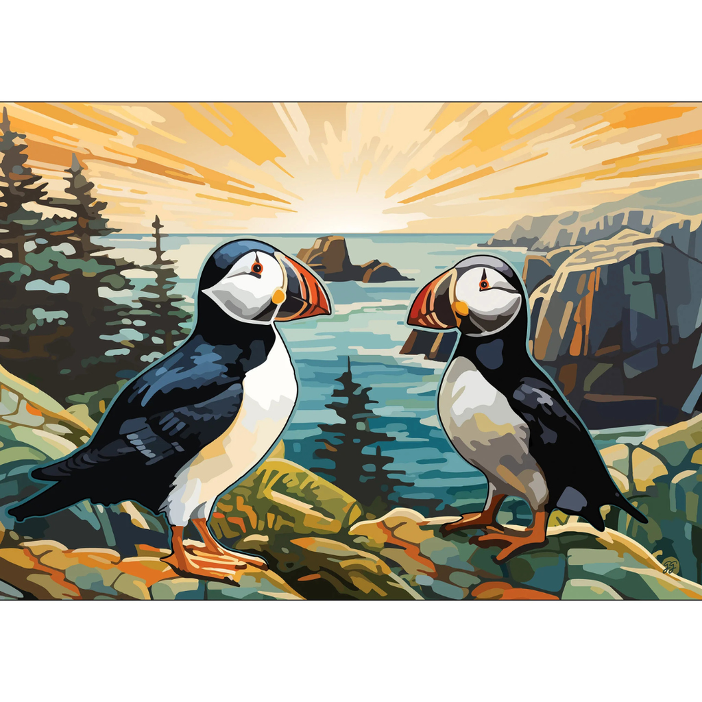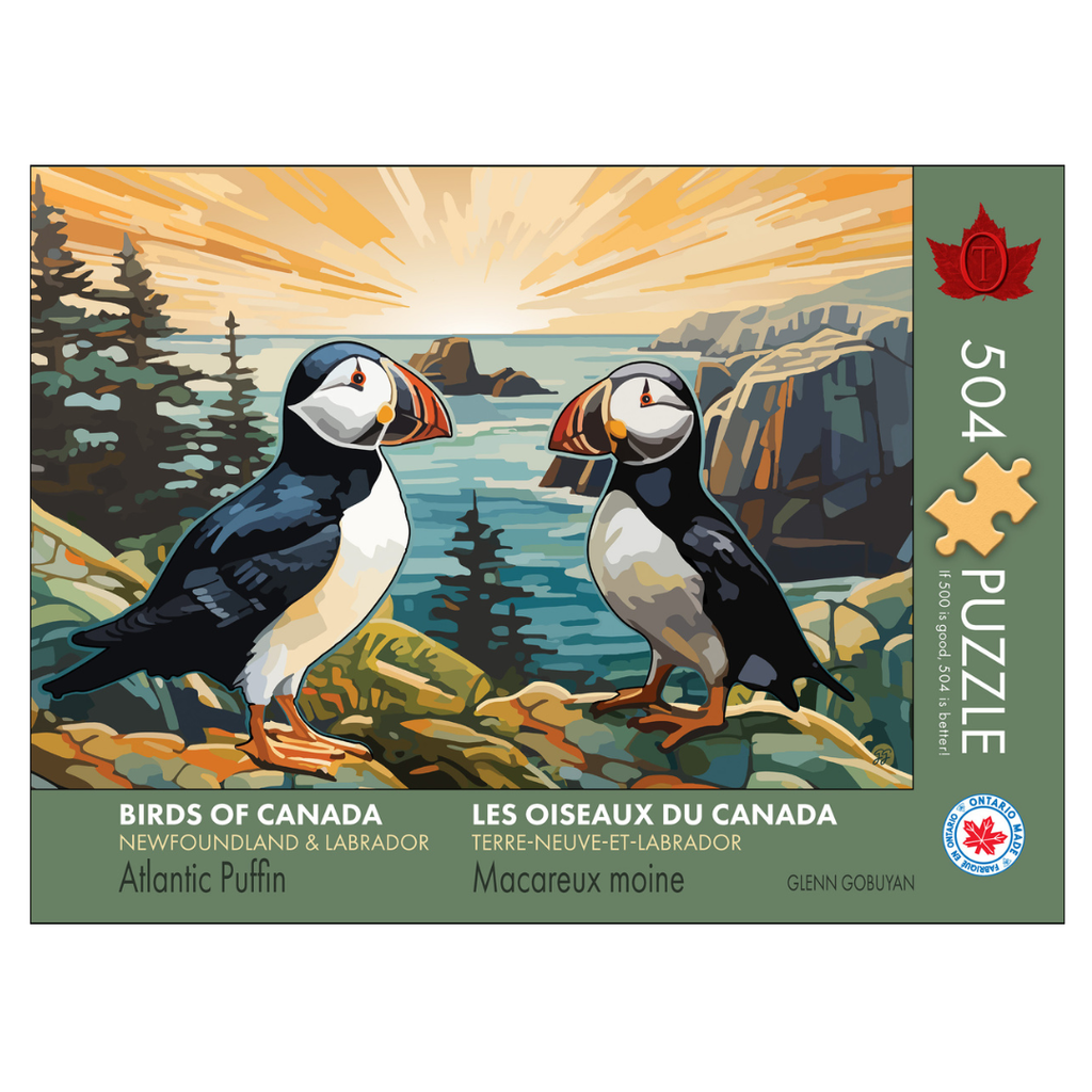 Atlantic Puffin is #3 in a series of Birds Of Canada from TheOccurrence by artist Glenn Gobuyan. Don’t let the Puffin's sweet face, its waddling walk or the fact that chicks are called Pufflings fool you. No sir, these Clowns of the Sea have mad skillz! Reaching speeds of up to 80 kph, wings flapping up to 400 times per minute, able to hold up to 10 fish at once, their beaks glow under UV light! Take that Ethan Hunt (Mission Impossible).