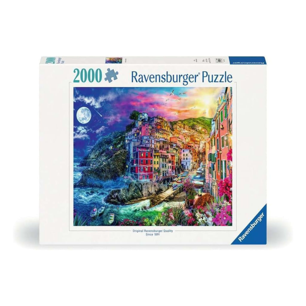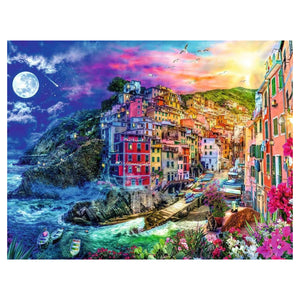 Welcome to the Italian Riviera, a rugged northwest coastline where a series of five villages, Colorful Cinque Terre, sit perched on the rocky shore! This charming 2000 piece jigsaw puzzle illustrates the vibrantly painted houses built into the steep cliffs. Hike the famous 10-mile cliffside path, Sentiero Azzurro (Blue Trail), to get from village to village, or hop on the train for an easy ride. Relax as you sip a glass of the famous local wine that graced the tables of popes and kings in the 1400s!