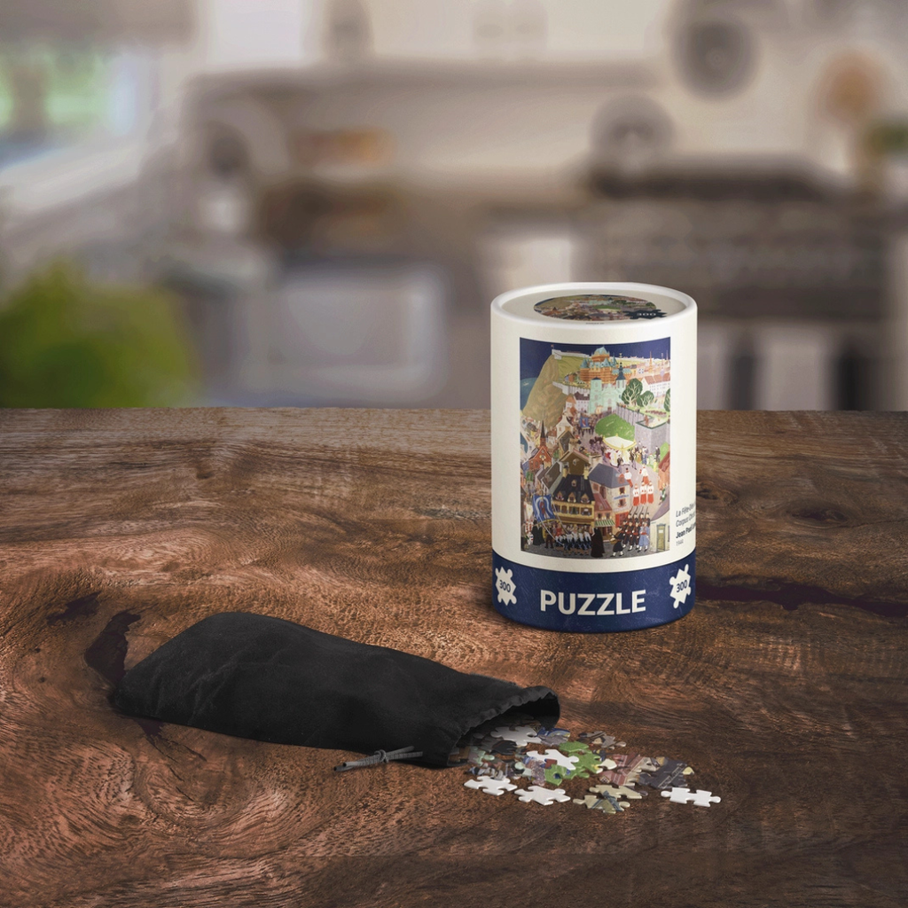 - Pieces housed in a reusable cloth bag