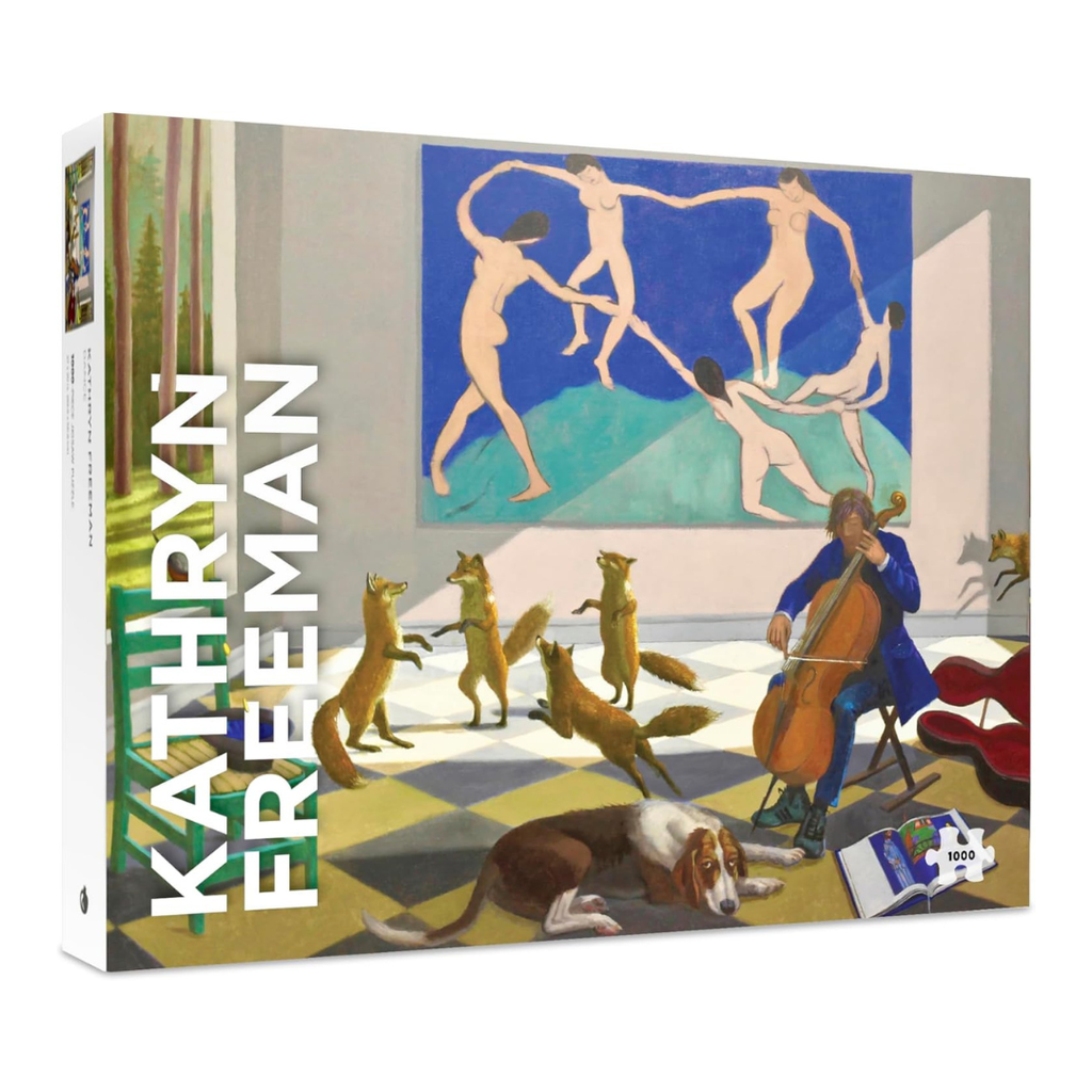 As part of artist Kathryn Freeman’s Animal Dreams series, Dance expresses the lyrical beauty and magic of Matisse’s eponymous cameo while prompting reflection on how habitat encroachment is affecting wildlife. The fox family has leapt in from the wild, yet moves to the music in Freeman’s dreamlike sanctuary. And the cellist plays on.