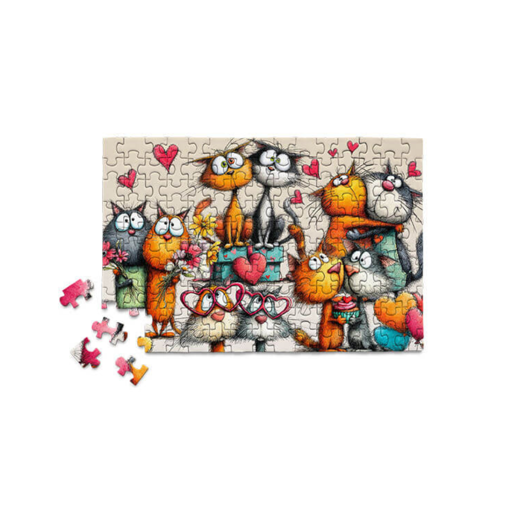 These silly, sweet cats are here to spread the love...one hug at a time. These quirky felines help make for a fun, and lighthearted puzzle break.