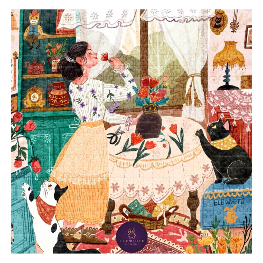 You can almost smell the flowers and the freshness of spring in this pretty puzzle from Elewhite. The image carries a vintage, earthy warmth that feels familiar and comforting - the emotion quietly stands out. Artist Ling Hua has done an excellent job capturing intimate, almost unnoticeable feelings.