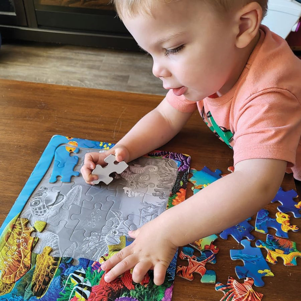 A tray puzzle is made up of durable inlaid pieces in a tray with definitive outlines underneath to help identify where each piece goes. The large pieces make it easy for hands to grasp and allows for those needing more visual cues to see a greater portion of the image per piece. Originally, Cobble Hill's tray puzzles were intended for young children, but they quickly realized that seniors enjoyed these puzzles as well, particularly those living with dementia. Therefore, their image selection hopefully appeals to both the young and the young at heart.