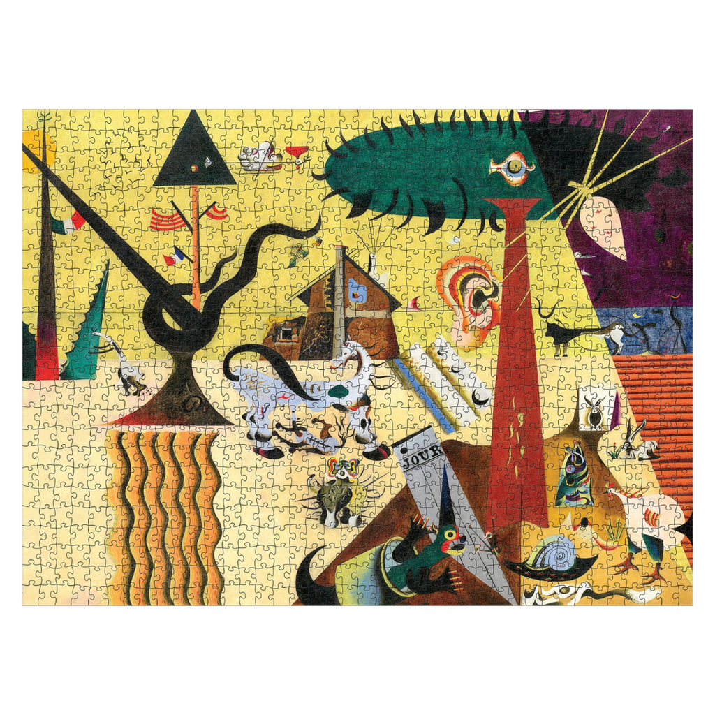 Suffused with sunlight, The Tilled Field is one of Modern master Joan Miró’s groundbreaking Surrealist works. Amidst a perhaps perplexing chaos, Miró’s visionary order juxtaposes the natural and human-made worlds while expressing the artist’s belief that every natural object has a soul. In a flat perspective rooted in Cubism’s shallow planes, a stylized farmer tills the land, a fantastical tree has both eye and ear, and political references flutter free. The playful painting—conceptualizing his family’s farm with iconography from Spanish tapestries, Catalan ceramics, early Christian art and even earlier cave paintings—is, at heart, Miró’s love letter to his Catalonian homeland.