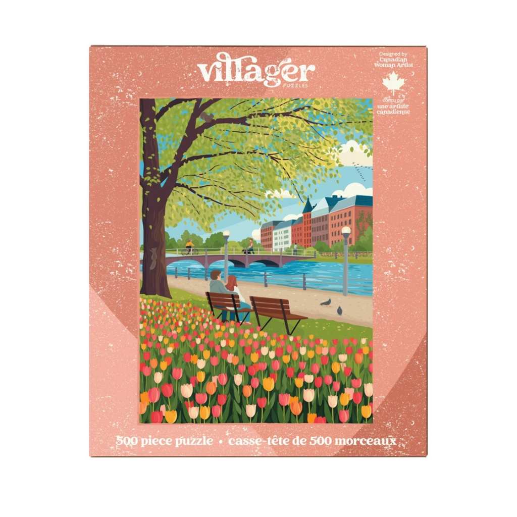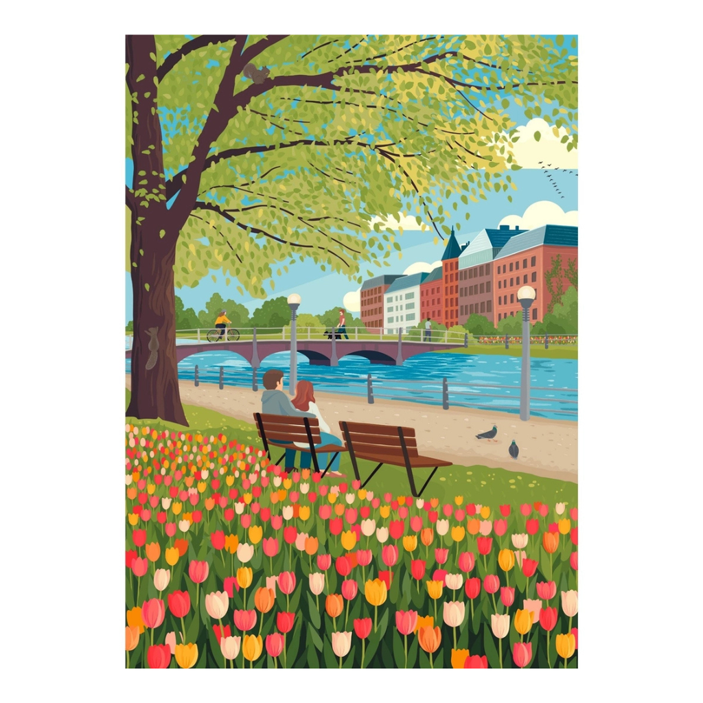 Picture yourself in Ottawa, Ontario in springtime, experiencing the Canadian Tulip Festival as millions of tulips bloom along the Rideau Canal. Created by artist Diana Pinnell, this joyful scene captures the energy of the city as people head outdoors to walk, bike and soak in the colour after a long winter.
